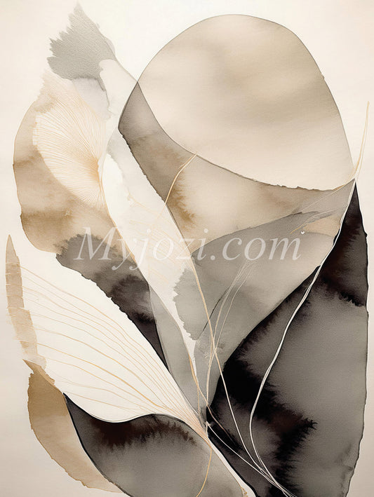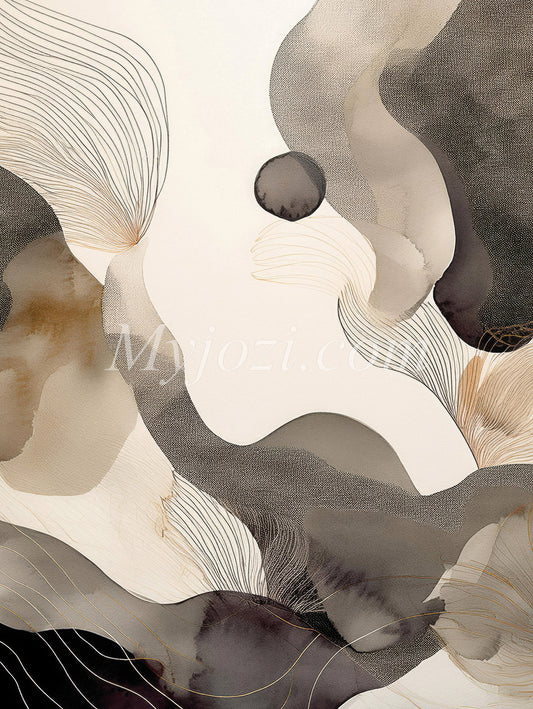 Abstrakt Konstposter - Lekande Harmoni I Beige & Grå