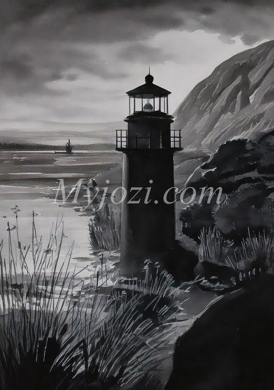 Svartvit Konst Poster - Den Glömda Fyren