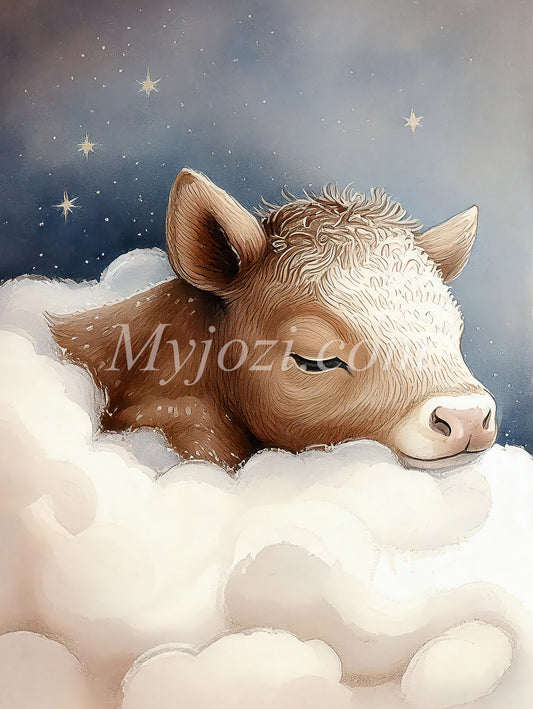 Barntavla Lonia - En kalv på fluffiga moln under stjärnhimlen