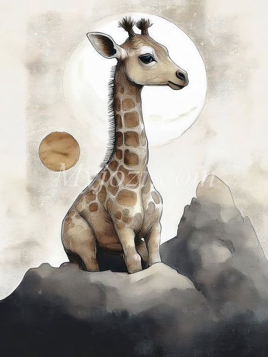 En Giraff i månljuset - Lugnande Poster för barnrummet