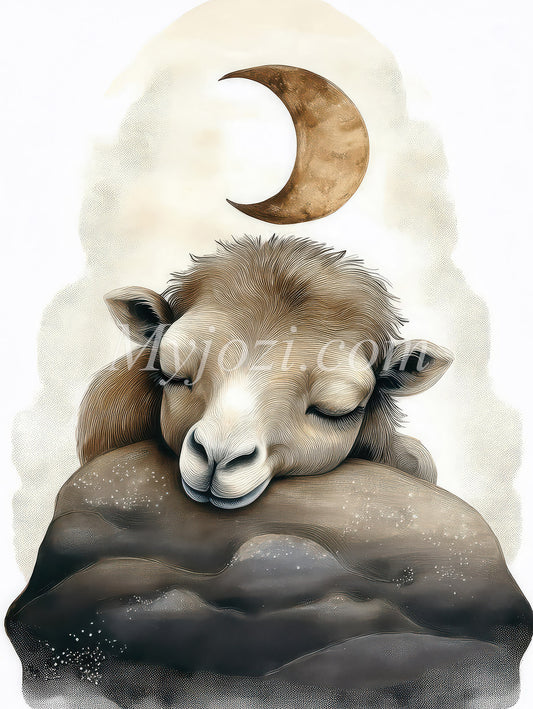 En Barnposter i mjuk färgpalett - Den sovande Dromedaren