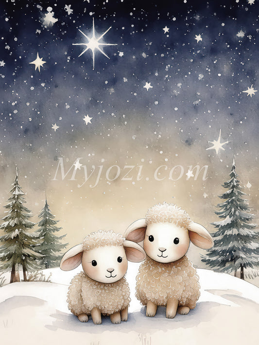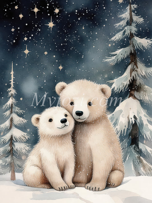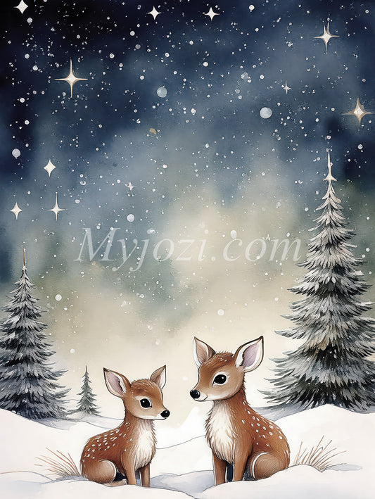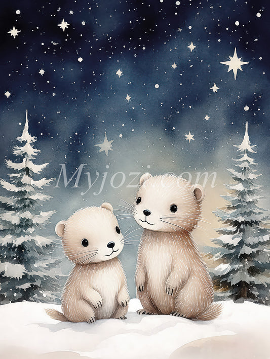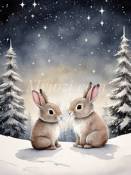 Sedens Lepus - Wintry Children's Poster with Rabbits Under the Stars